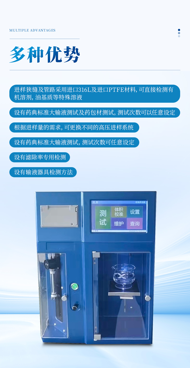 ●滿足2015版《中國藥典》可直接檢測注射液、無菌粉、輸液器具及藥包材的不溶性微粒含量及大小