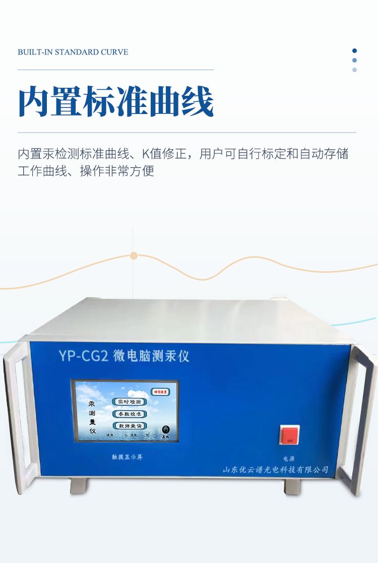 2.內(nèi)置汞檢測標(biāo)準(zhǔn)曲線、K值修正,用戶可自行標(biāo)定和自動存儲工作曲線、操作非常方便。