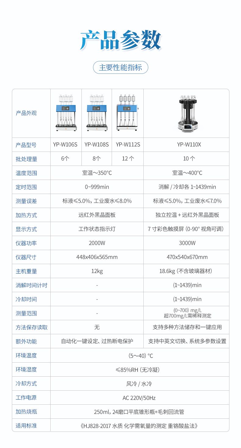 11. 符合標準:依據環境標準《HJ 828-2017 水質 化學需氧量的測定 重鉻酸鹽法 》的原理設計制造。