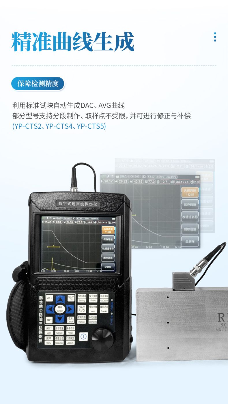 3、自動校準:一鍵式自動校準,操作便捷,自動測試探頭的“零點”、“K值”、“前沿”及材料的“聲速”;