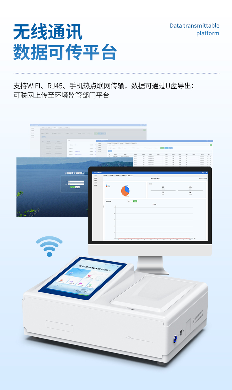 10、儀器帶有監(jiān)管云平臺,數(shù)據(jù)可通過局域網和互聯(lián)網上傳,亦可對接上傳至環(huán)境監(jiān)管部門平臺。