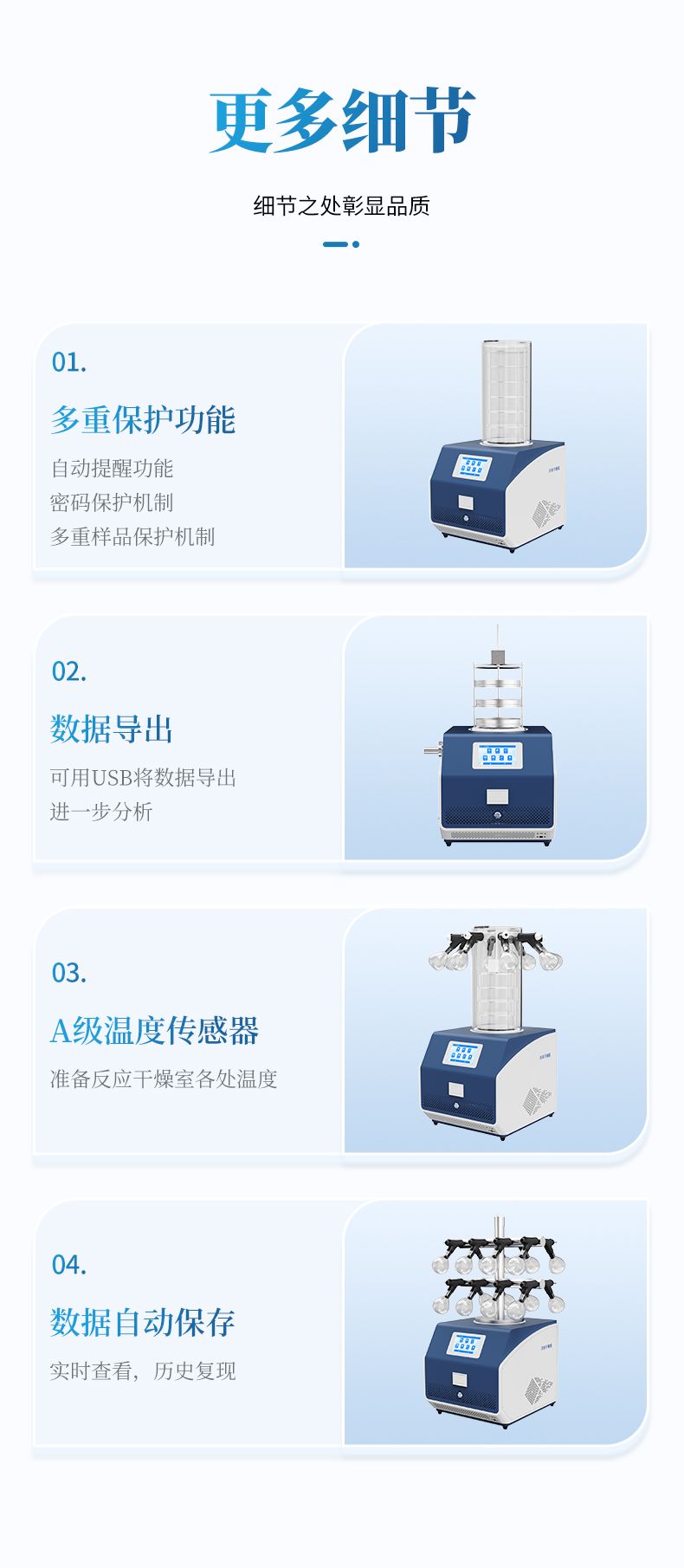 (6) 多重樣品保護機制,如冷阱溫度過高時,禁止真空泵啟動,避免樣品沸騰而被破壞。