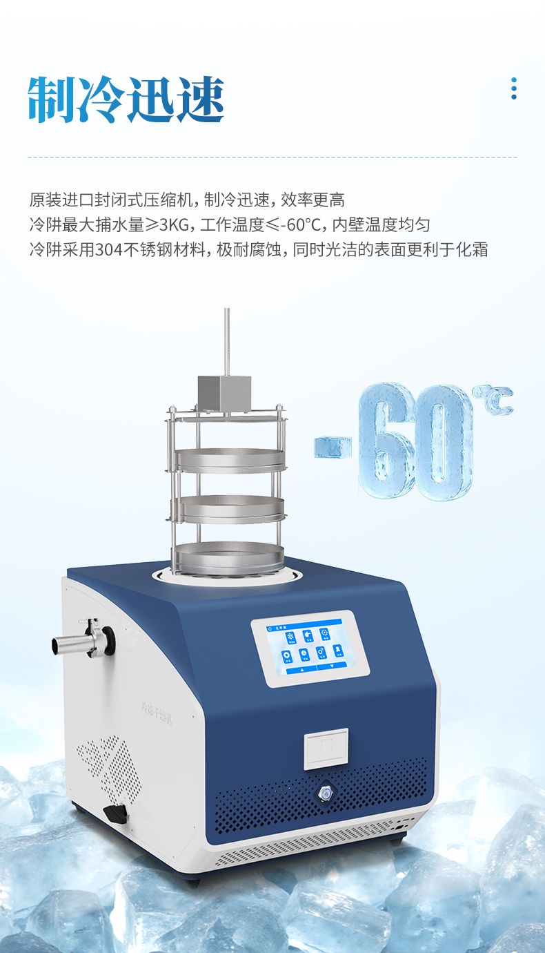 冷凍干燥機(jī)是一種利用真空冷凍干燥技術(shù)進(jìn)行物質(zhì)干燥的設(shè)備。其基本原理是將含水物質(zhì)先凍結(jié)成固態(tài),然后通過升華原理使水分從固態(tài)直接升華為氣態(tài),從而去除水分,保存物質(zhì)。凍干機(jī)廣泛應(yīng)用于醫(yī)藥、生物制品、食品等領(lǐng)域,具有干燥效果好、保存時(shí)間長(zhǎng)、復(fù)水性好等優(yōu)點(diǎn)。