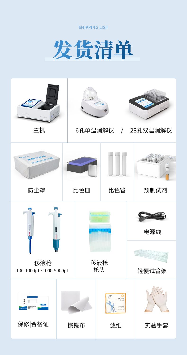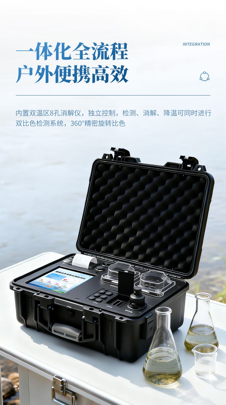 4.便攜一體式檢測(cè)設(shè)備,內(nèi)置大容量鋰電池,可一機(jī)實(shí)現(xiàn)戶外水樣消解、測(cè)定;