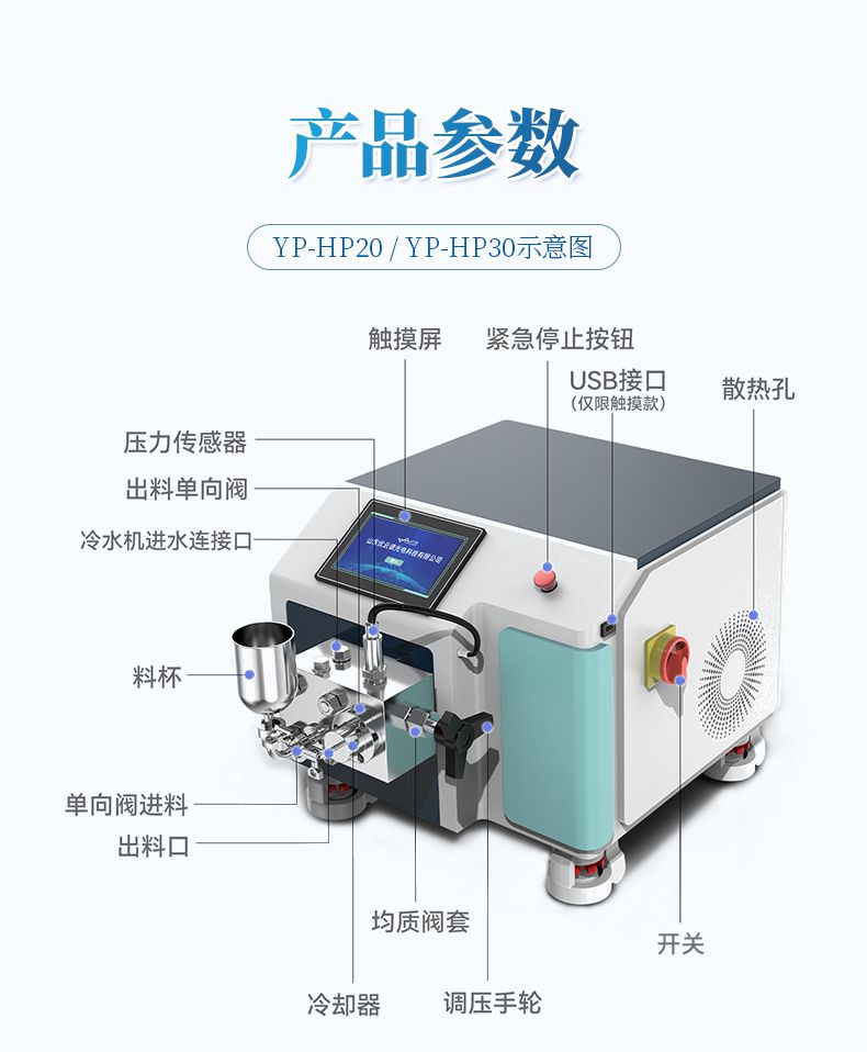 6、物料控溫:要求均質閥帶控溫夾套與控溫介質出入接頭、連接管路,可實現在線控溫,出料溫度控制在 -5℃~100 ℃ (根據物料要求不同而定);實現高壓均質部件恒溫控制,實現設備與物料同時控溫。保證物料生物學活性。