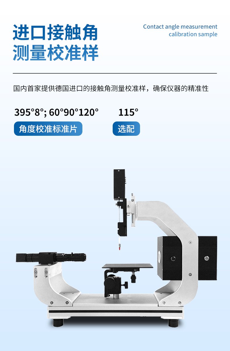 光學接觸角測量儀是測量液體對固體材料接觸角的儀器,主要用于表征液體對固體材料表面的潤濕性能,通過光學成像獲取液滴的圖像,利用計算機軟件,通過數學模型擬合出液滴圖像的輪廓并得到接觸角或表面張力,并進行表面能計算和潤濕性分析。