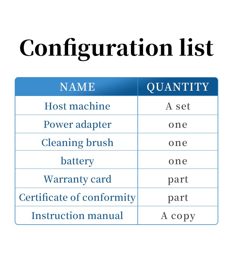 5.Warranty card & certificate of conformity ×1