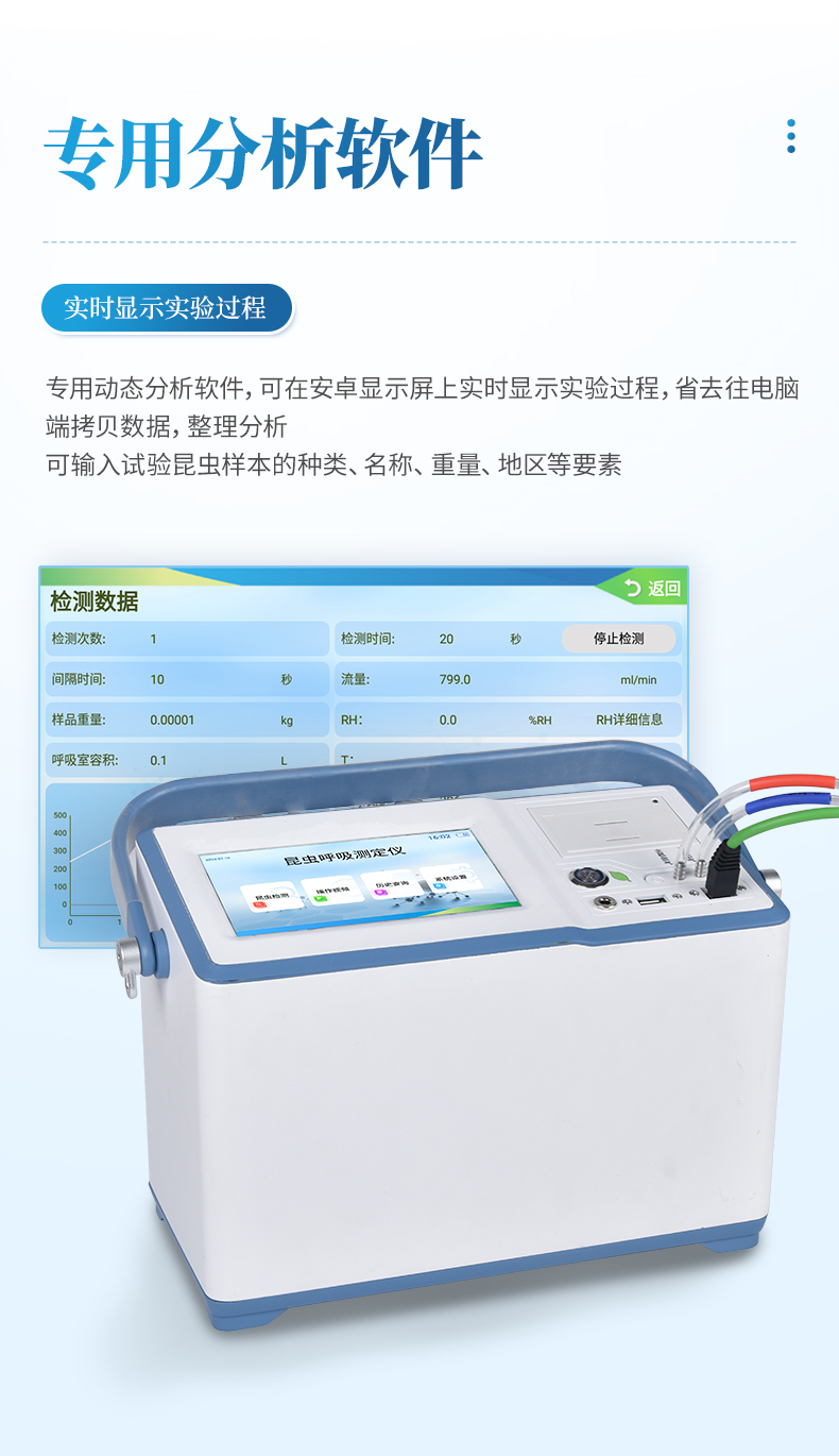 3、氣體流量直接通過儀器設(shè)定,可以進(jìn)行不同流量下昆蟲呼吸強度的試驗;