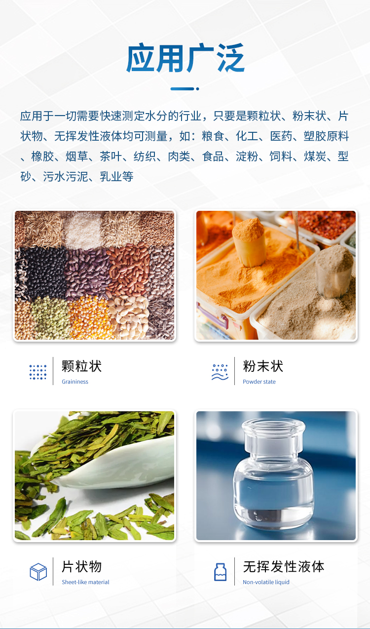 7、用途非常廣泛、幾乎適用各行業(yè)的水分測(cè)定;
