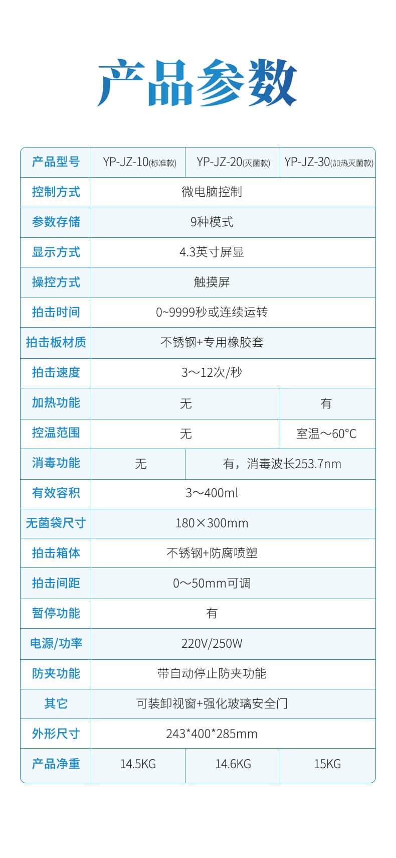 1. 拍打動作溫和,避免過度破碎,適合微生物檢測。