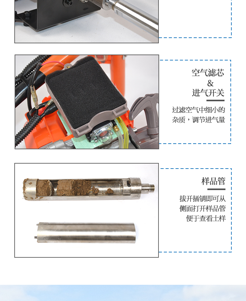 4、筒型鉆頭獨特可拆卸裁口設計,取樣容易。