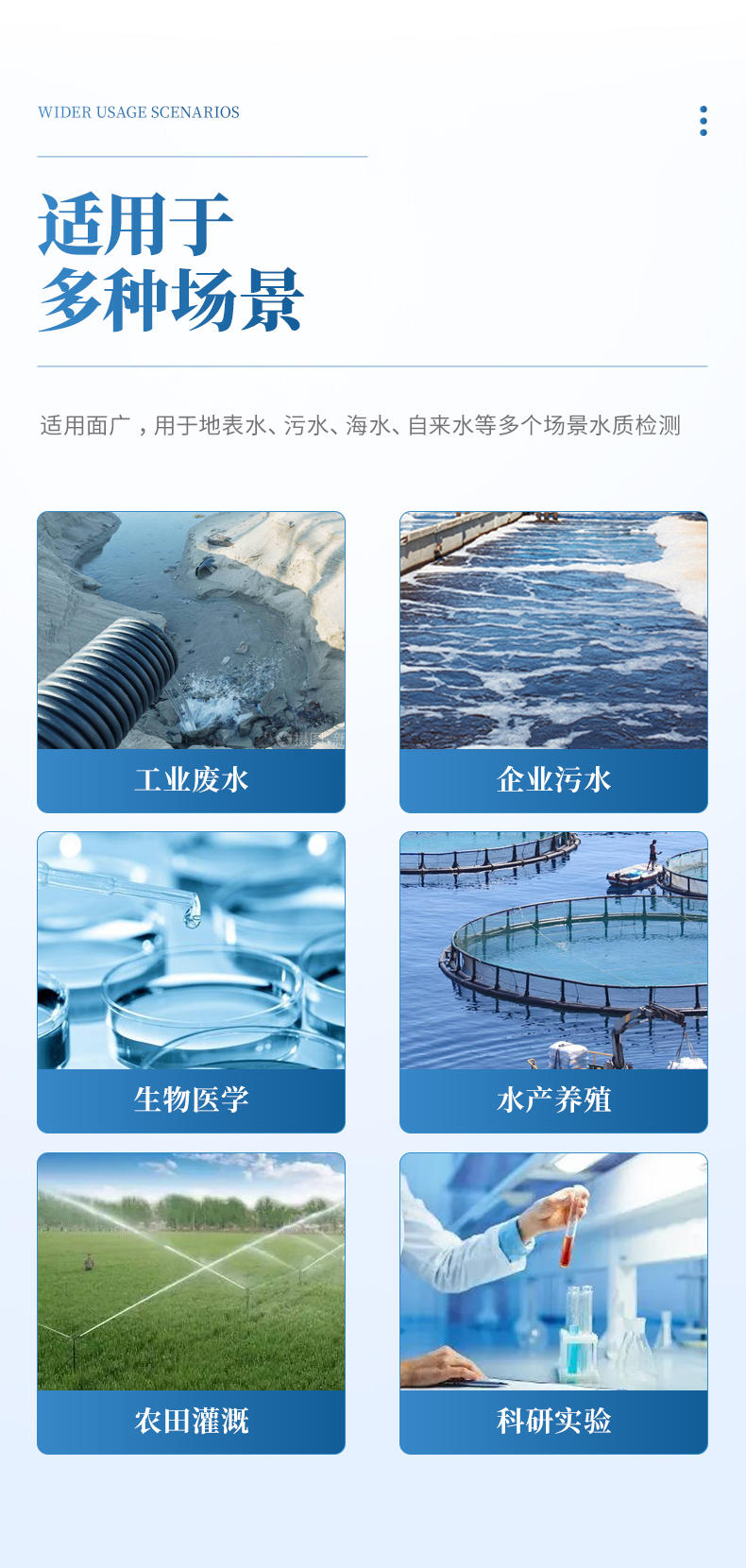適用面廣,可用于地表水、污水、海水、自來水等多個場景水質(zhì)檢測,滿足客戶需求。