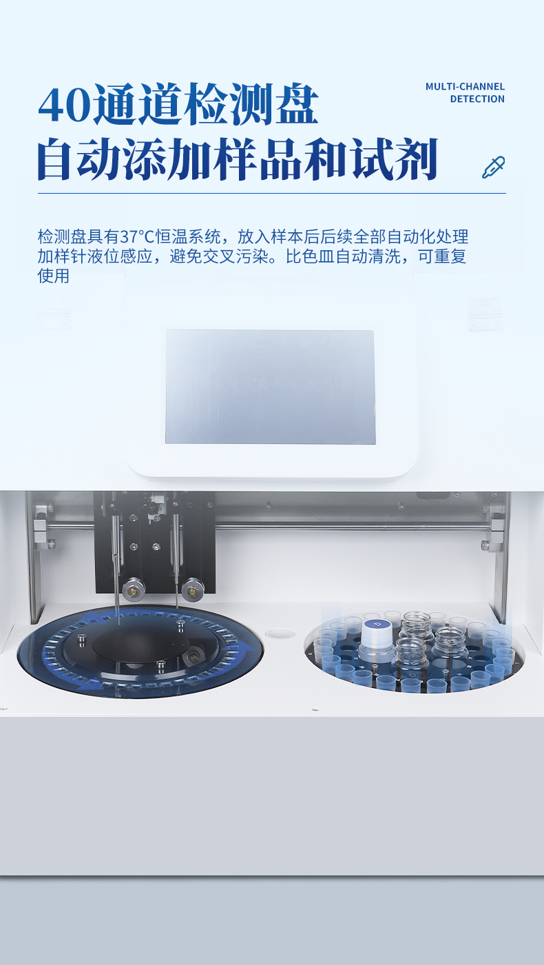 檢測(cè)盤(pán):40通道檢測(cè)盤(pán),比色皿容量500uL,檢測(cè)盤(pán)具有37℃恒溫系統(tǒng)