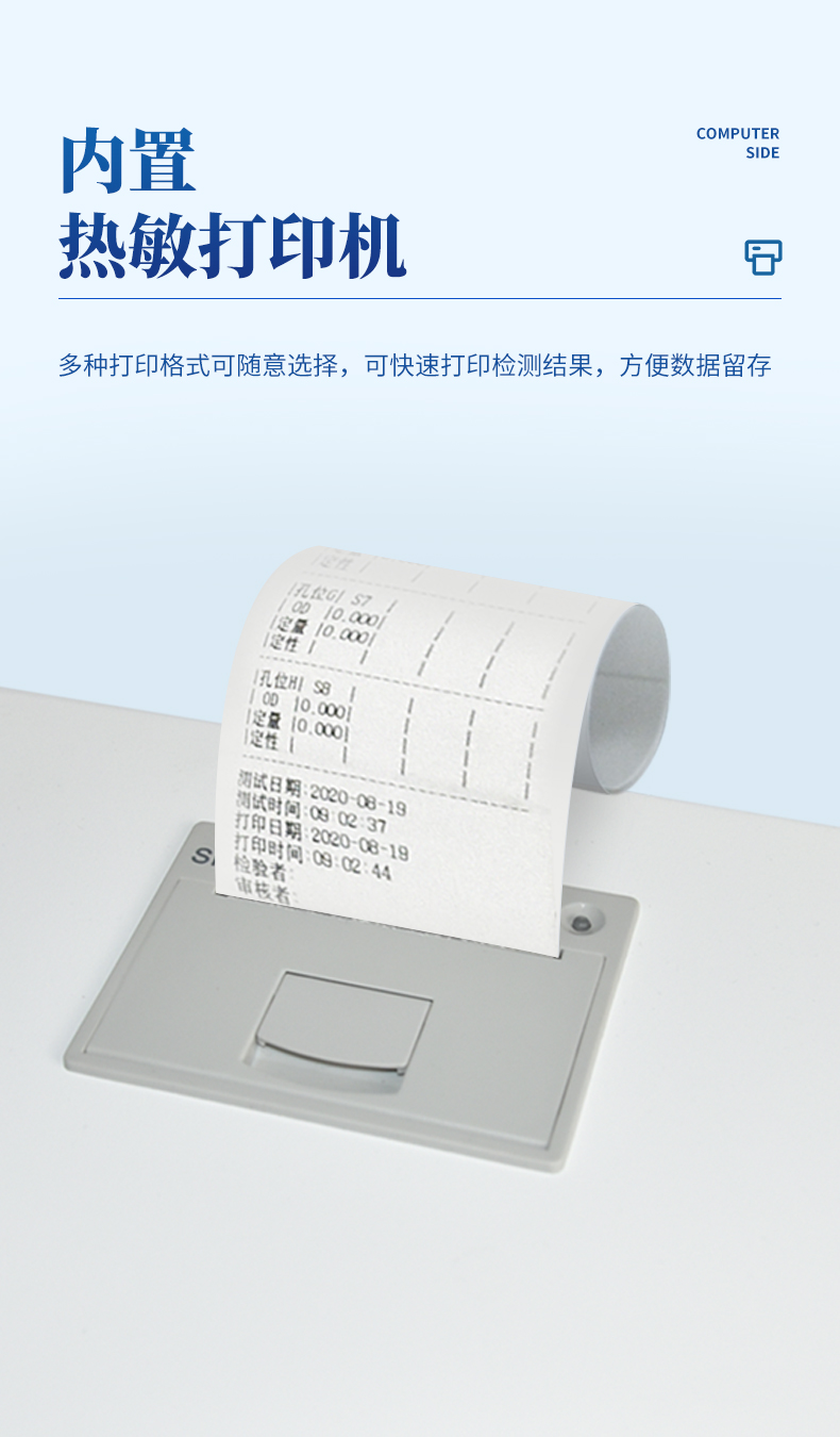 打印:多種打印格式可隨意選擇,機(jī)器內(nèi)置熱敏打印機(jī)。