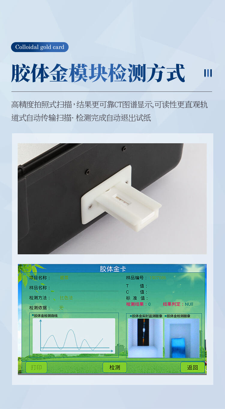 6、膠體金模塊檢測方式:軌道式自動傳輸掃描,檢測完成后自動退出檢測卡。