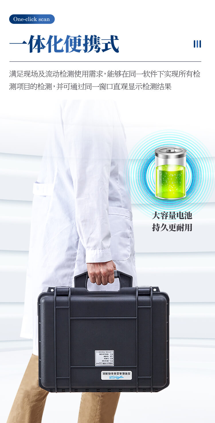 5、一體化便攜式快檢設備,滿足現場及流動檢測使用需求,能夠在同一軟件下實現所有檢測項目的檢測,并可通過同一窗口直觀顯示檢測結果。