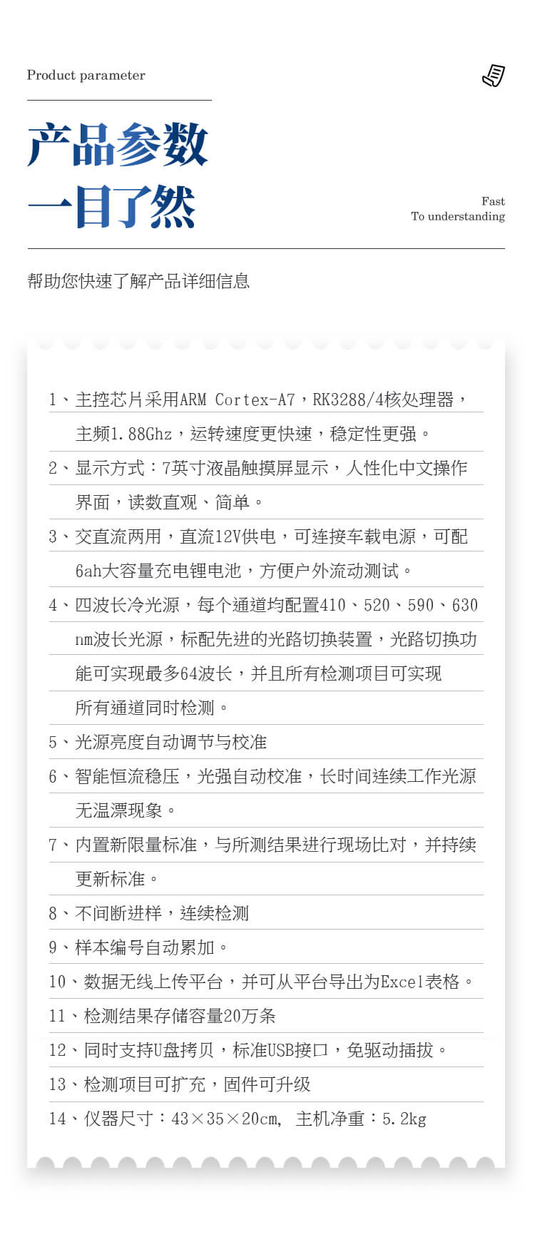 14、儀器尺寸:43×35×20cm, 主機凈重:5.2kg