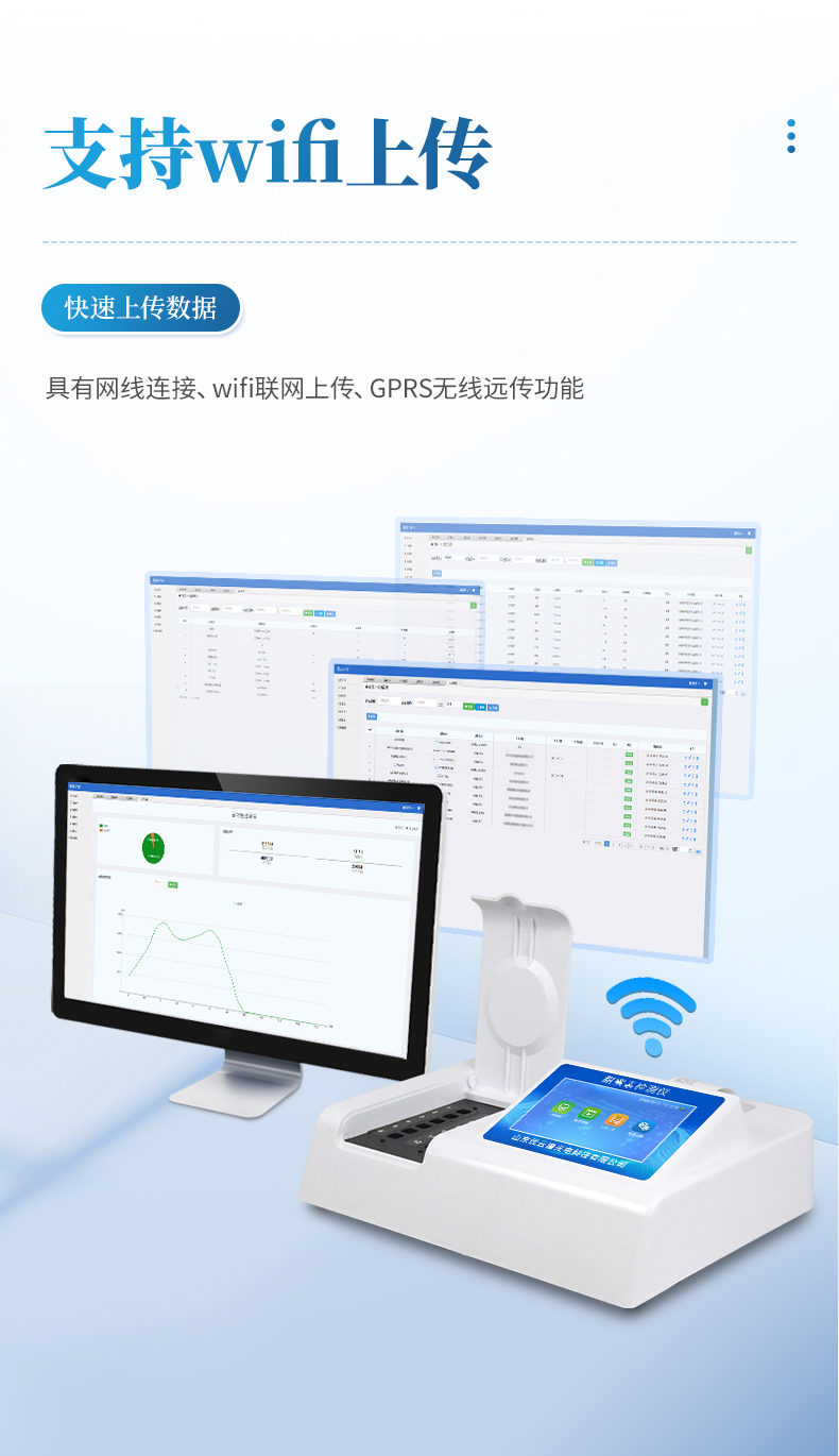 2、儀器具有網線連接、wifi聯網上傳、GPRS無線遠傳功能,快速上傳數據。