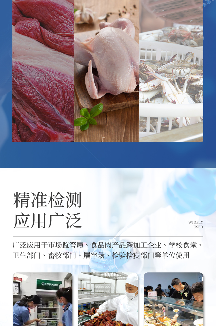 該多功能食品安全檢測(cè)儀為集成一體化食品安全快速檢測(cè)分析設(shè)備,廣泛應(yīng)用于市場(chǎng)監(jiān)管局、食品肉產(chǎn)品深加工企業(yè)、學(xué)校食堂、衛(wèi)生部門、畜牧部門、屠宰場(chǎng)、檢驗(yàn)檢疫部門等單位使用。