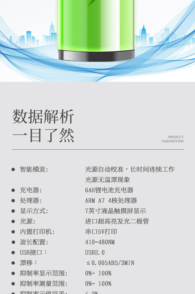5、智能恒流穩(wěn)壓,光強(qiáng)自動校準(zhǔn),長時間連續(xù)工作光源無溫漂現(xiàn)象。