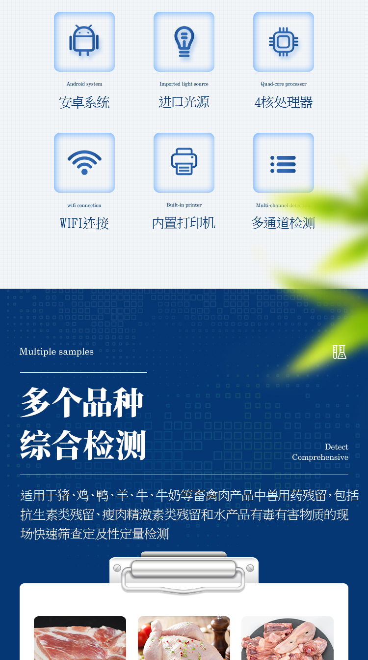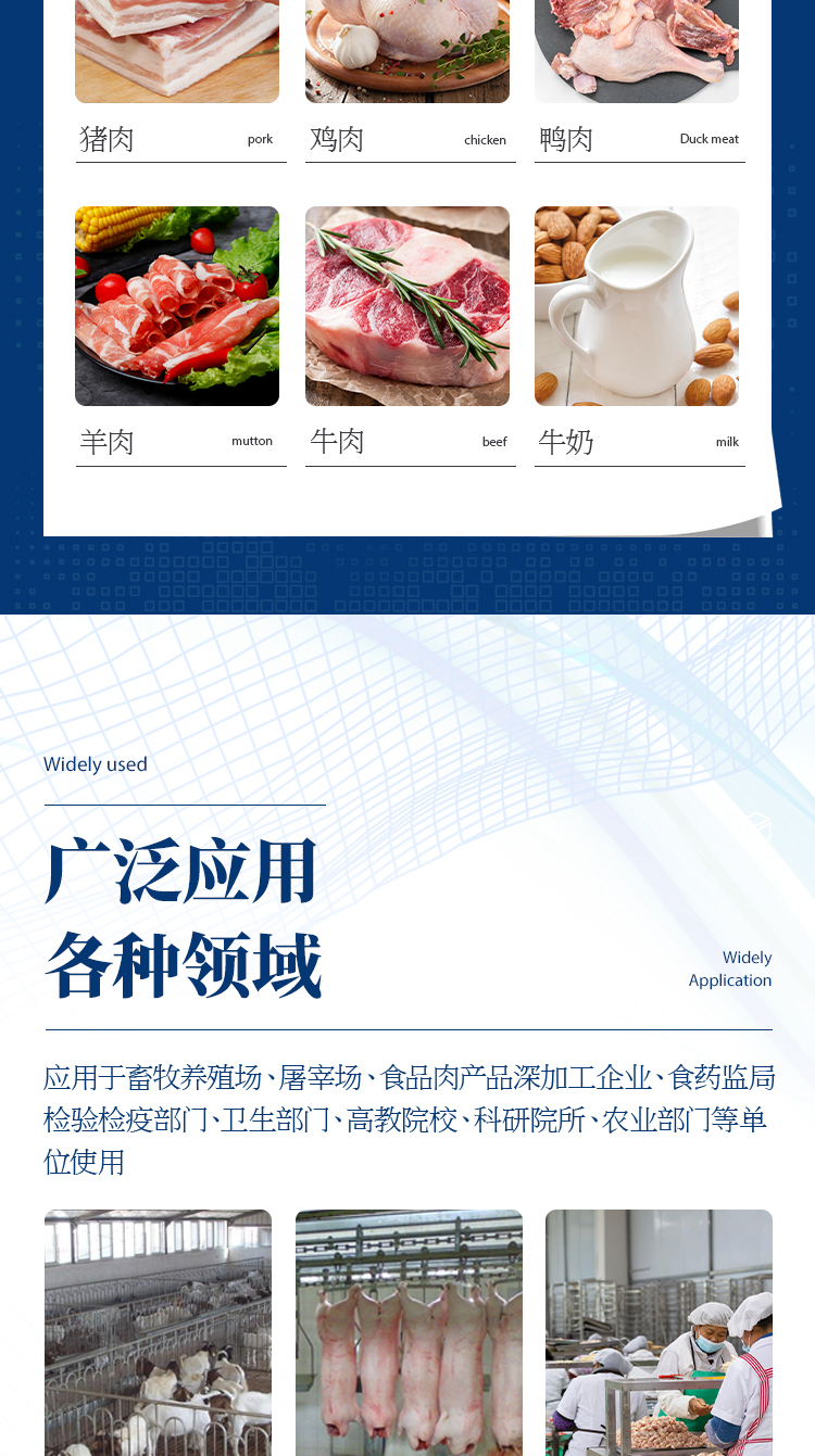 抗生素殘留檢測儀廣泛應用于食藥監局、衛生部門、農業部門、養殖場、屠宰場、食品肉產品深加工企業、檢驗檢疫部門等單位使用。