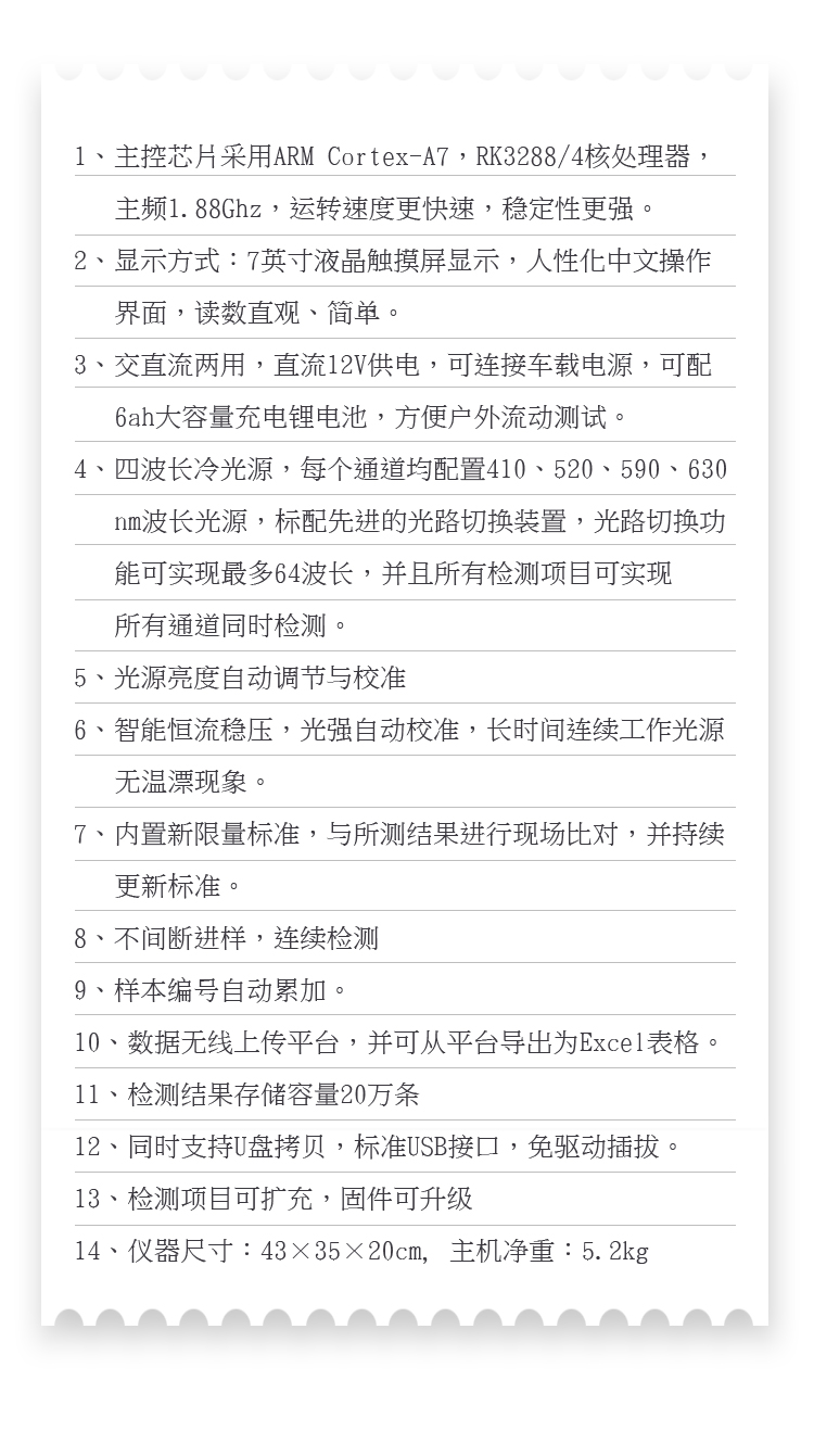 5、智能恒流穩壓,光強自動校準,長時間連續工作光源無溫漂現象。。