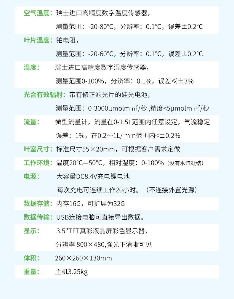 零點漂移:±0.005L,氣泵流量可根據需要設定,可測量不同氣體流量下對光合作用的影響,氣體流量穩定。