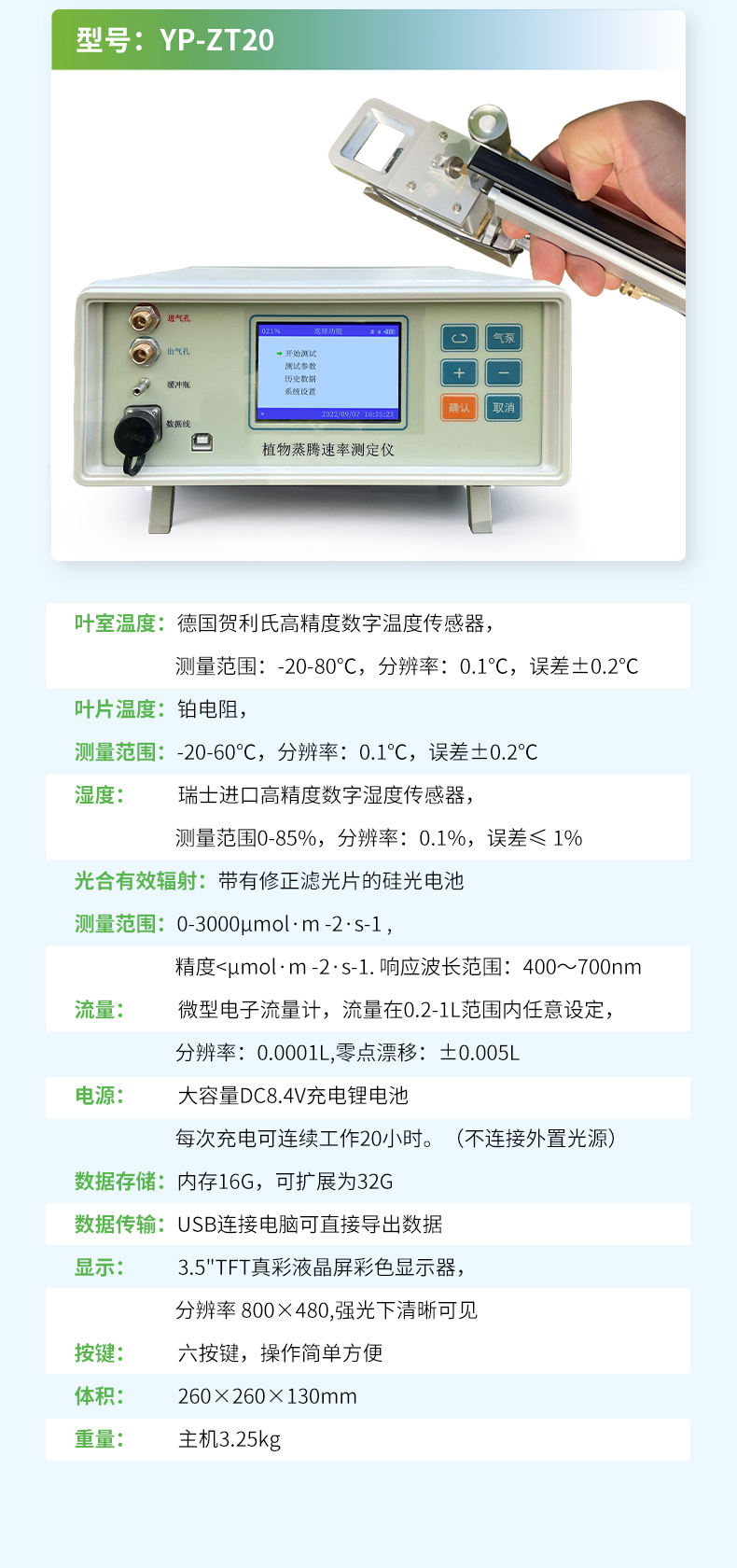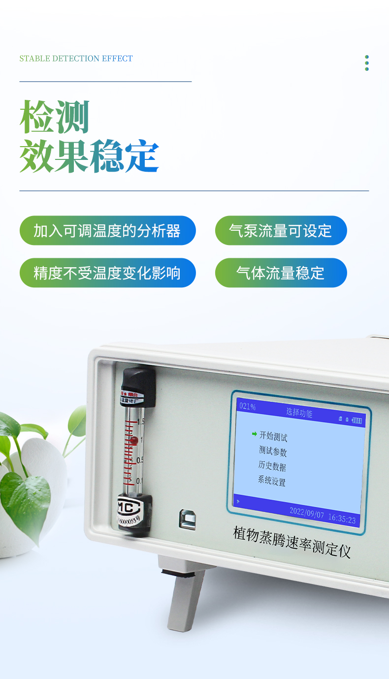 原理:將葉面置于開放葉室中,讓大氣以一定流速進入葉室,分別測量進出葉室的氣體濕度,然后通過進出葉室的氣體濕度差值來計算出蒸騰速率。