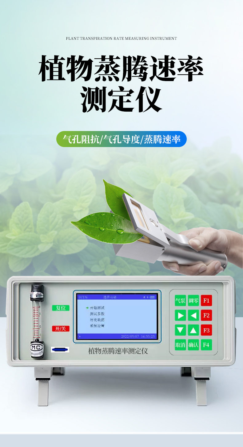 植物蒸騰速率測定儀是一款采用開閉路兩種測量方式的科研型儀器。用來測量各種因素對葉片氣孔行為的影響,可方便、重復、準確地計算出氣孔阻抗、氣孔導度和蒸騰速率,還可測得空氣溫濕度,葉面溫度,光合有效輻射。廣泛的應用于植物葉片的水分生理研究,農作物水分利用、水分脅迫危害、生物化控調節效果等研究。