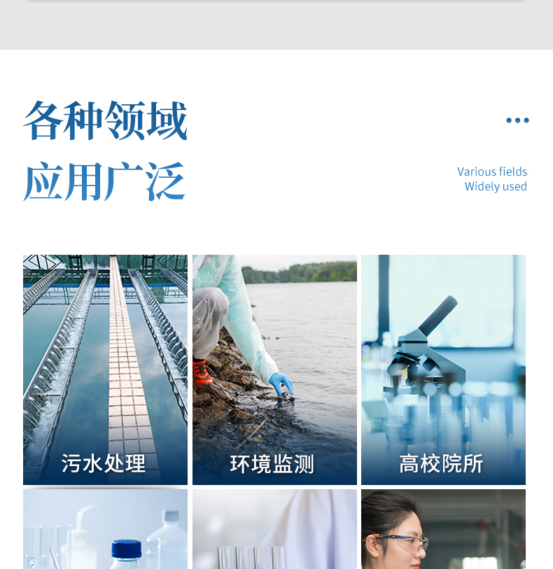 適用于生活污水、工業(yè)廢水、地下水、地表水中多種水質(zhì)污染物的檢測;運用于水質(zhì)檢測實驗室、市政、污水處理廠、環(huán)境監(jiān)測站及教育科研高校、電廠、疾控中心、造紙電鍍、水產(chǎn)養(yǎng)殖、生物制藥、石化、煤炭、冶金、紡織、食品等行業(yè)的水質(zhì)分析。