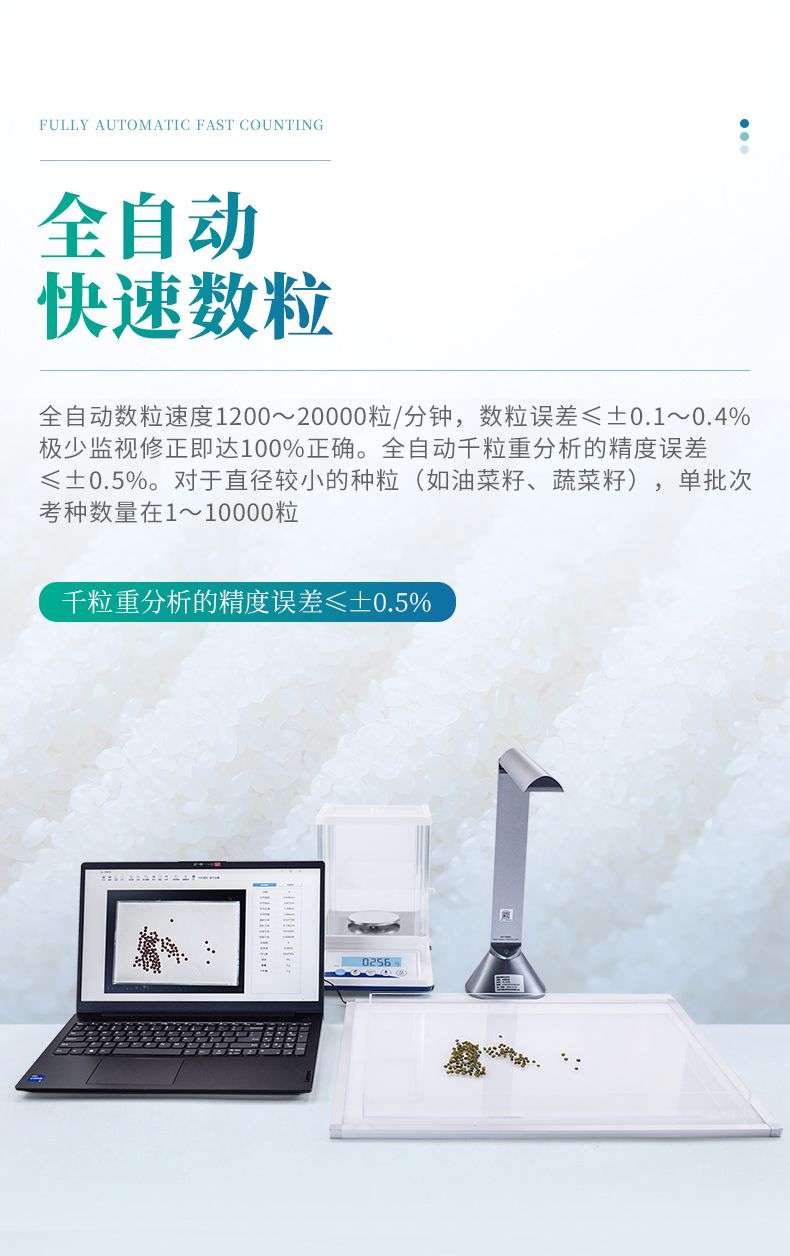 | 數(shù)粒精度 | 圓形種子±1‰,長(zhǎng)形種子±3‰(適用1000顆以上種子) | |