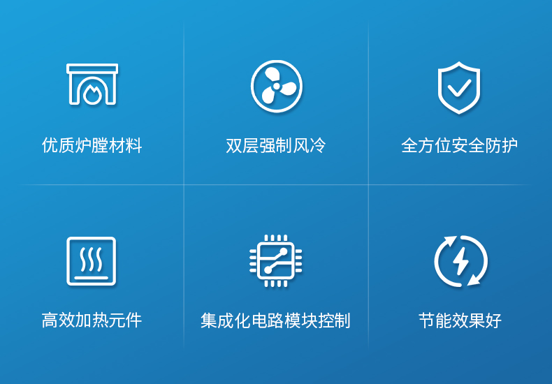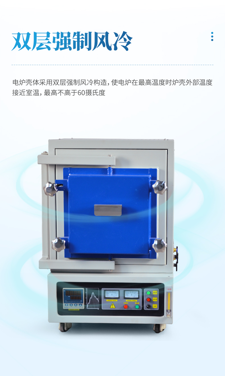 電爐殼體采用雙層強制風冷構造,使電爐在最高溫度時爐殼外部溫度接近室溫,最高不高于40攝氏度。