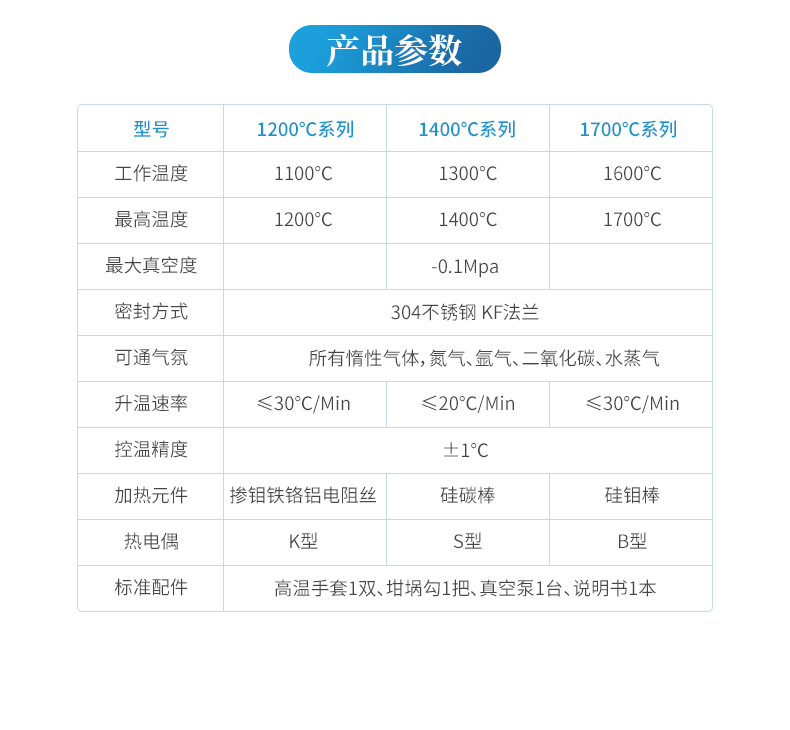 | 最高溫度 | 1700℃ |