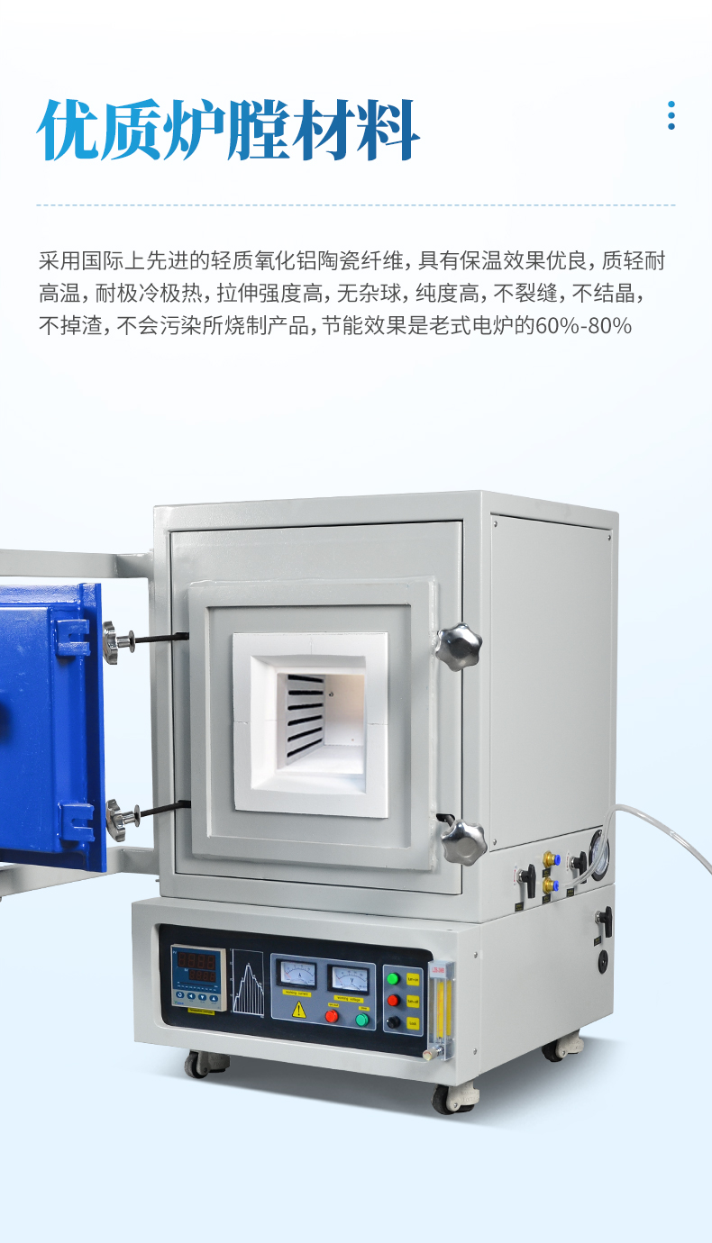 用于高校、科研院所、工礦企業做高溫氣氛燒結、氣氛還原、CVD實驗、真空退火等。具有溫場均勻、升降溫速率快、節能、可通入多重氣體等特點。