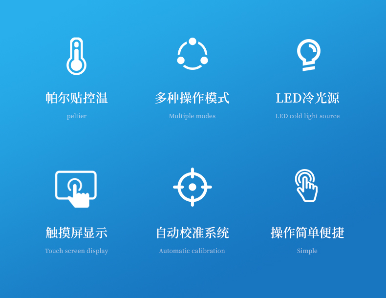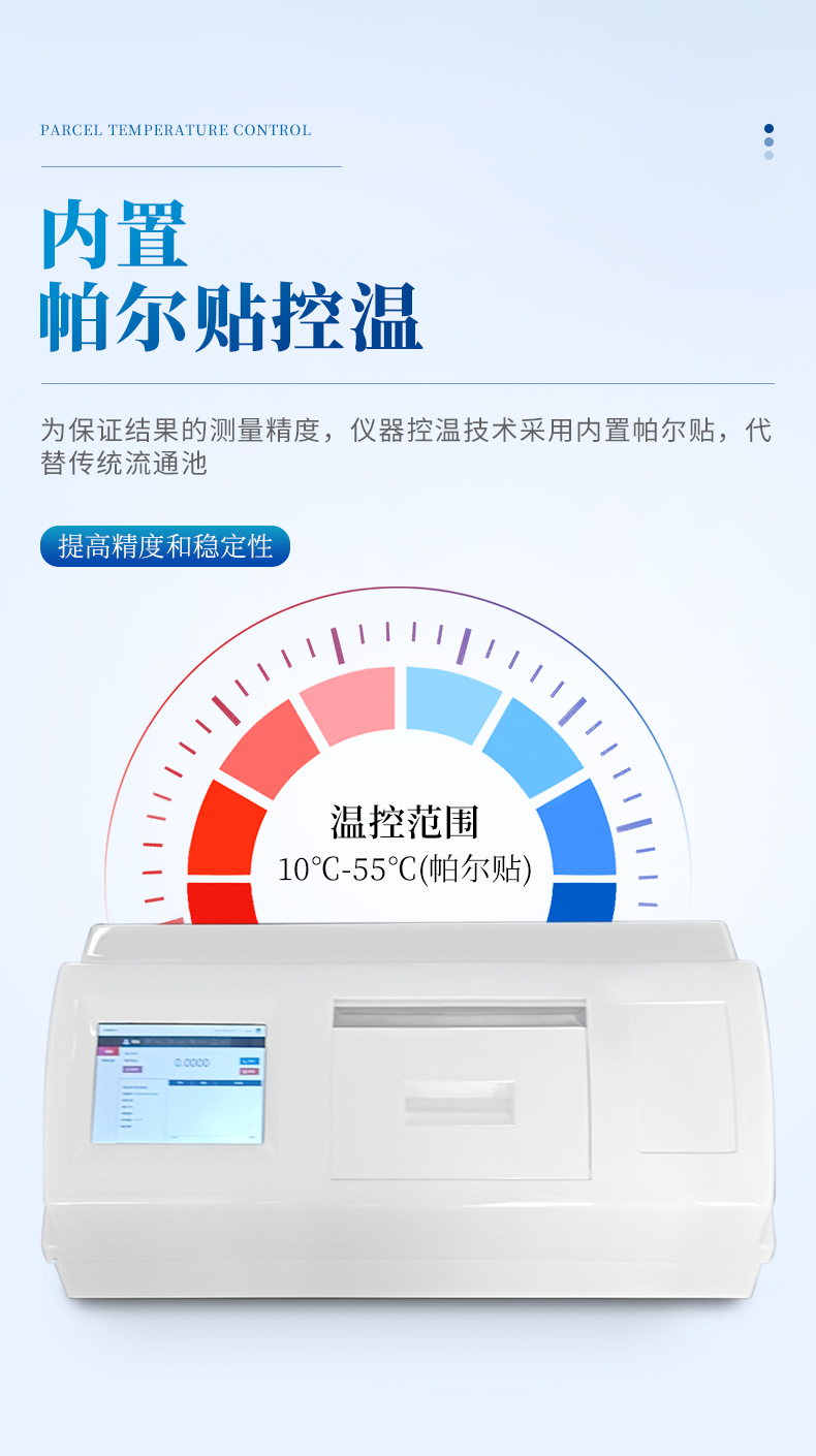1: 內(nèi)置帕爾貼控溫,提高精度和穩(wěn)定性;
