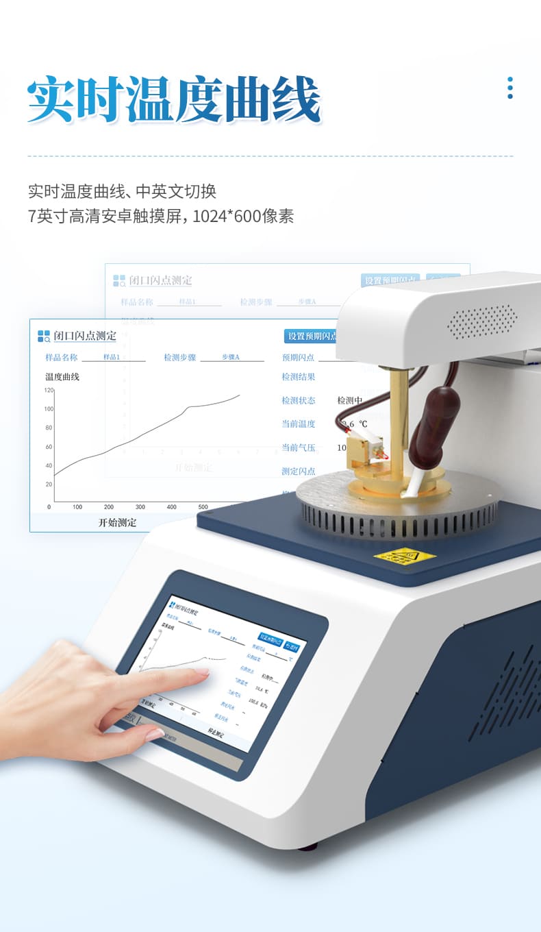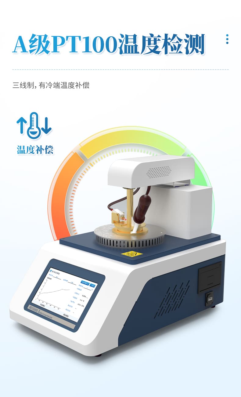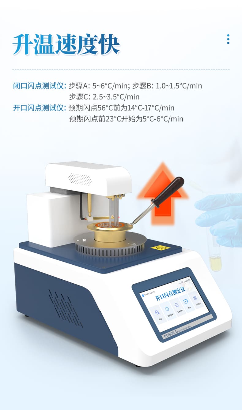 開口閃點全自動測定儀,用來測定石油產品的開口閃點值、燃點值。儀器采用電點火方式,無需任何可燃性氣體,完全符合ASTMD92(GB3536-2008)、GB267-88的方法要求。采用ARM系列高性能微處理器,電擦除存儲器(可存儲上萬條數據記錄),彩色液晶顯示器及觸摸屏,PID自整定等多項最新技術。使儀器具有以下特點:1、功能強。可一機兩用同時檢測閃點、燃點,并打印測試結果,內部具有時鐘芯片,自動顯示當前日期、時間、掉電保持。2、精度高。溫度誤差控制在±1.5℃內,分辨率為0.1℃。3、重復性好。在保證測試環境符合GB3536(ASTM