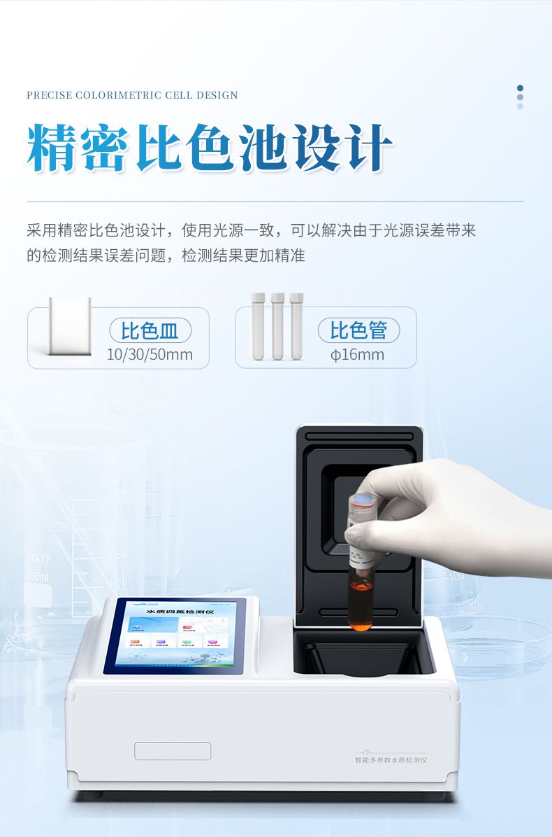 5、支持10mm、30mm、50mm皿比色和φ16mm管比色等比色方式,多元選擇,確保測量的準確性;