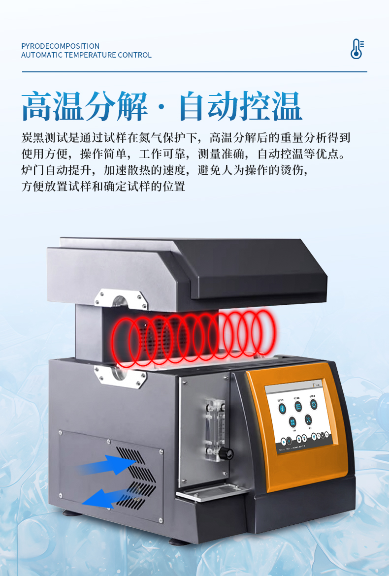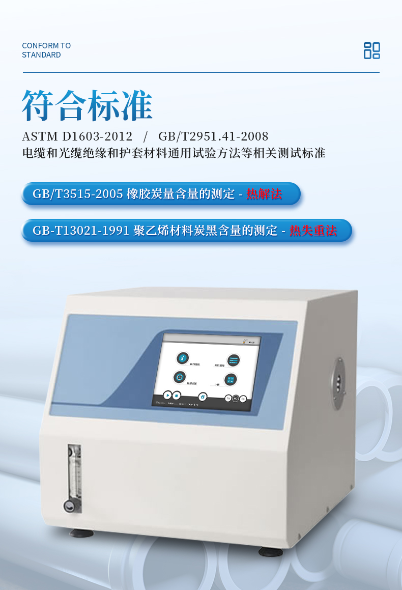 2 該儀器適用于聚乙烯、聚丙烯、聚丁烯塑料中炭黑含量的測定。