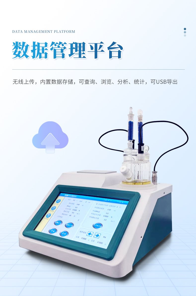 2.儀器具有試驗結果存儲、打印、計算功能;樣品測定過程由儀器自動控制,攪拌、測定60秒左右自動完成,直接顯示測定結果;全密封滴定池瓶,避免試劑與人接觸,也避免環境濕度的影響;并具有自動計算平均值和歷史記錄打印功能,能打印出百分含量、樣品編號、試驗員、實驗日期等內容;儀器準確度為:①水含量小于10微克水時,測量值誤差小于2ug水;②水含量在10微克-1000微克水時,測量誤差≤2ug水;③水含量在1000微克以上時,測量值誤差≤0.2%(不含進樣誤差);