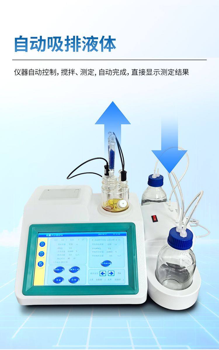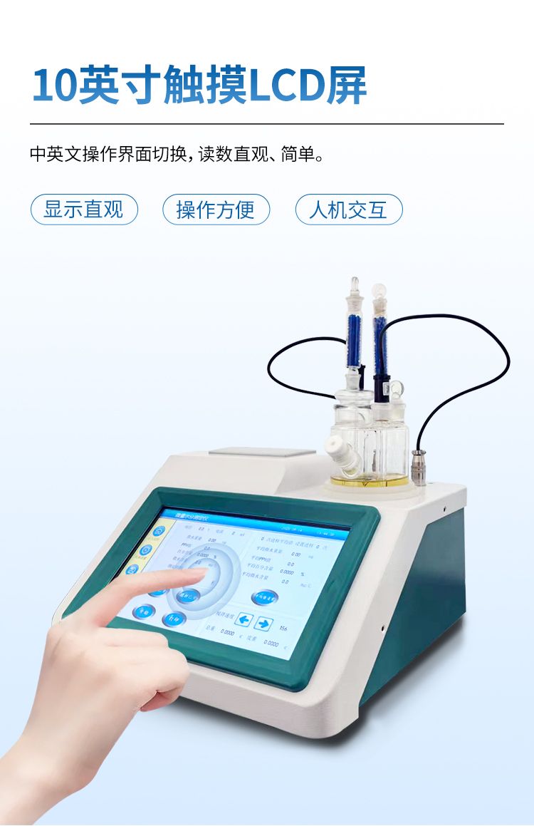 該儀器具有測(cè)定精度高、分析速度快、使用范圍廣、穩(wěn)定可靠、操作簡(jiǎn)單等優(yōu)點(diǎn)。廣泛用于電力、石油、化工、農(nóng)藥、醫(yī)藥等行業(yè)。樣品測(cè)定過程由儀器自動(dòng)控制,攪拌、測(cè)定60秒左右自動(dòng)完成,直接顯示測(cè)定結(jié)果;全密封滴定池瓶,避免試劑與人接觸,也避免環(huán)境濕度的影響;