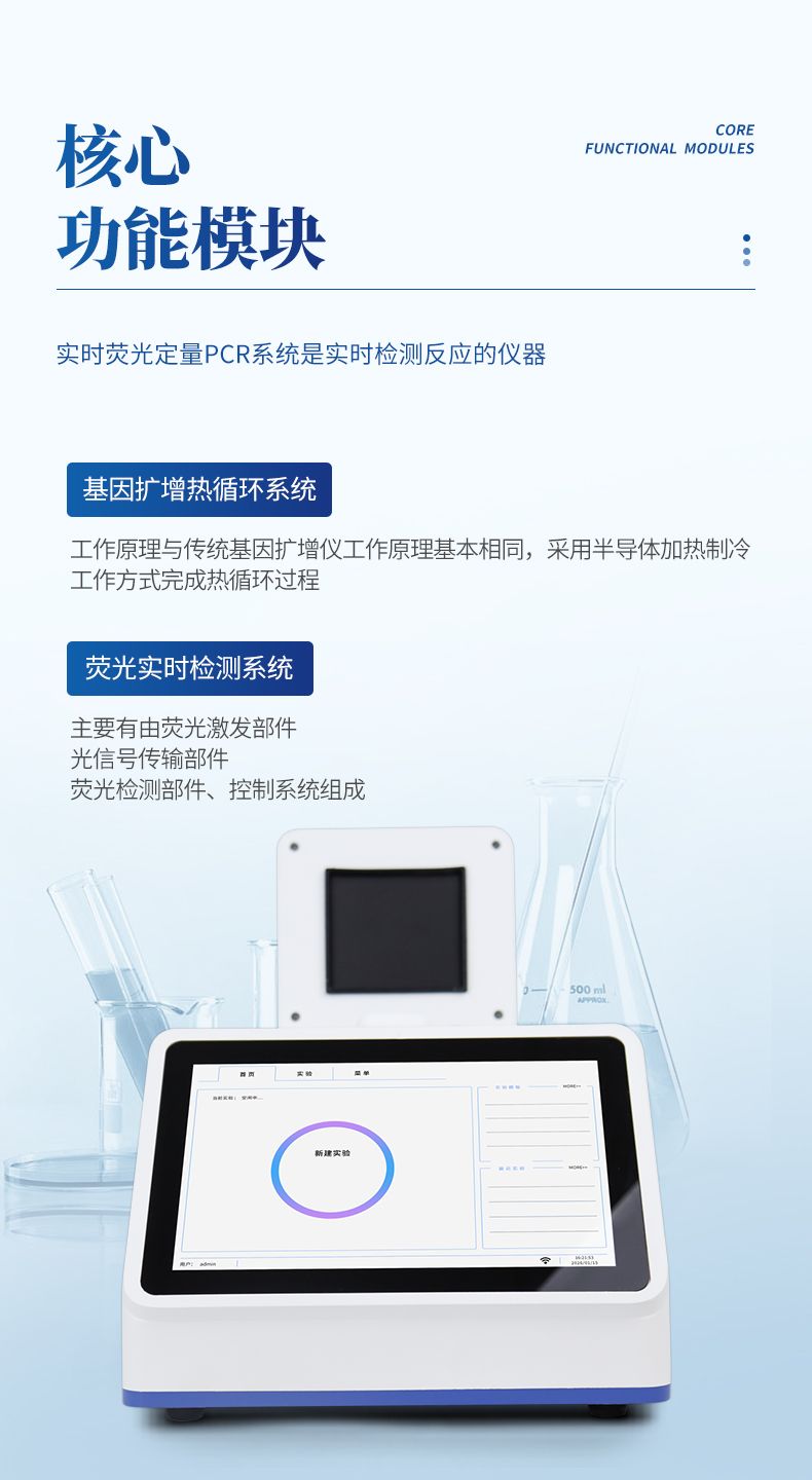 松材線蟲檢測儀是實時檢測反應的儀器,主要由基因擴增熱循環系統、熒光實時檢測系統、微電路控制系統、計算機及應用軟件組成。其中兩個核心功能模塊:熱循環系統和熒光實時檢測系統。其中基因擴增熱循環系統工作原理與傳統基因擴增儀工作原理基本相同,采用半導體加熱制冷工作方式完成熱循環過程。熒光檢測系統主要有由熒光激發部件、光信號傳輸部件、熒光檢測部件、控制系統組成。