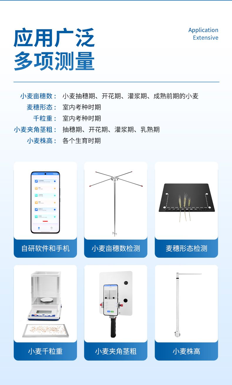 2)株高測量儀依據(jù)不同生長期標準(幼苗期/拔節(jié)期/灌漿期等),智能區(qū)分偽莖高度、真莖高度及植株全長;