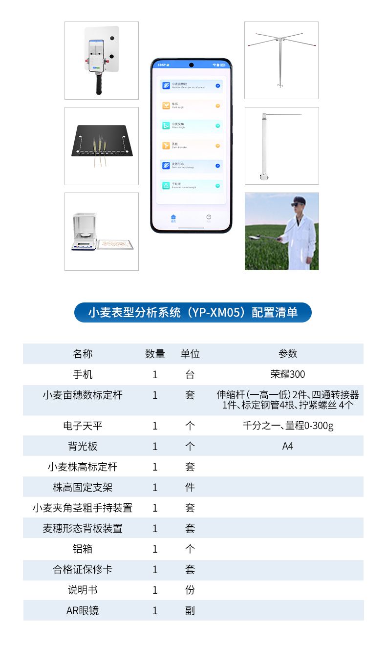 4)麥穗形態(tài)測定儀依托手機視覺技術(shù),通過AI圖像矯正算法一鍵獲取穗長、小穗數(shù)等關(guān)鍵指標。全系統(tǒng)實現(xiàn)田間快速取樣、批量分析及數(shù)據(jù)互聯(lián),為育種優(yōu)化、產(chǎn)量預測和功能基因解析提供智能化解決方案。