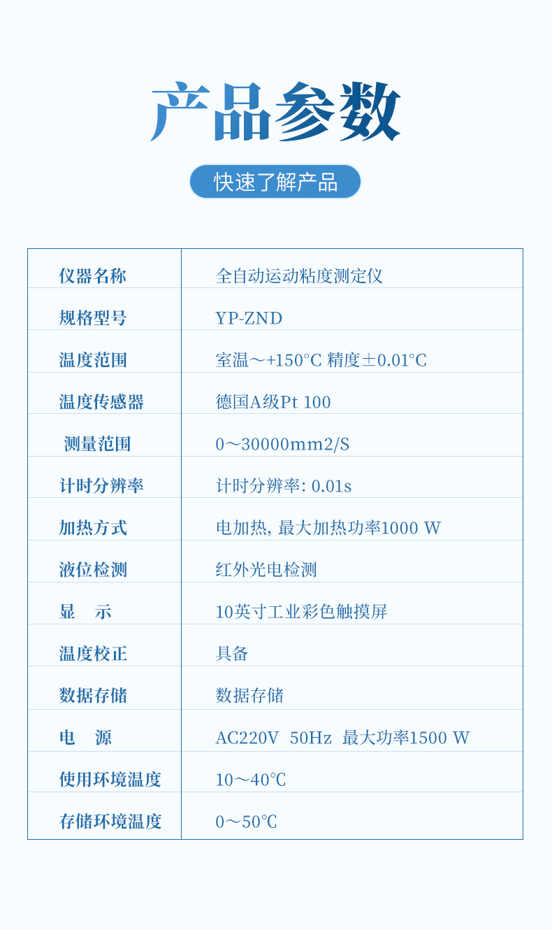 YP-ZND全自動運動粘度測定儀是按照GB/T265、ASTM D445的標準要求研制開發,用于測定液體、石油產品的運動粘度,結構設計精巧、美觀、實用、操作舒適。一鍵快速恒溫、油樣上吸、粘度檢測、粘度值計算、打印、粘度管清洗、烘干粘度管,不需要人工操作,儀器自動完成,一次可同時做2個樣品的實驗,提高工作效率;廣泛應用于藥典、石油、化工、科研、計量、商檢、電力等部門。