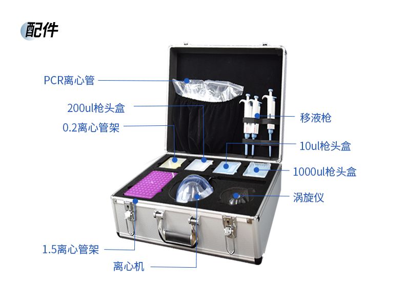 是一種非常便攜的方式提供8個(gè)樣本的實(shí)時(shí)熒光定量 PCR檢測(cè),適合動(dòng)植物疫病,食品安全,生物科研實(shí)驗(yàn)室等日 常低通量檢測(cè)需求。儀器可放置于快檢箱,保障現(xiàn)場(chǎng)快速分子 檢測(cè)需求。