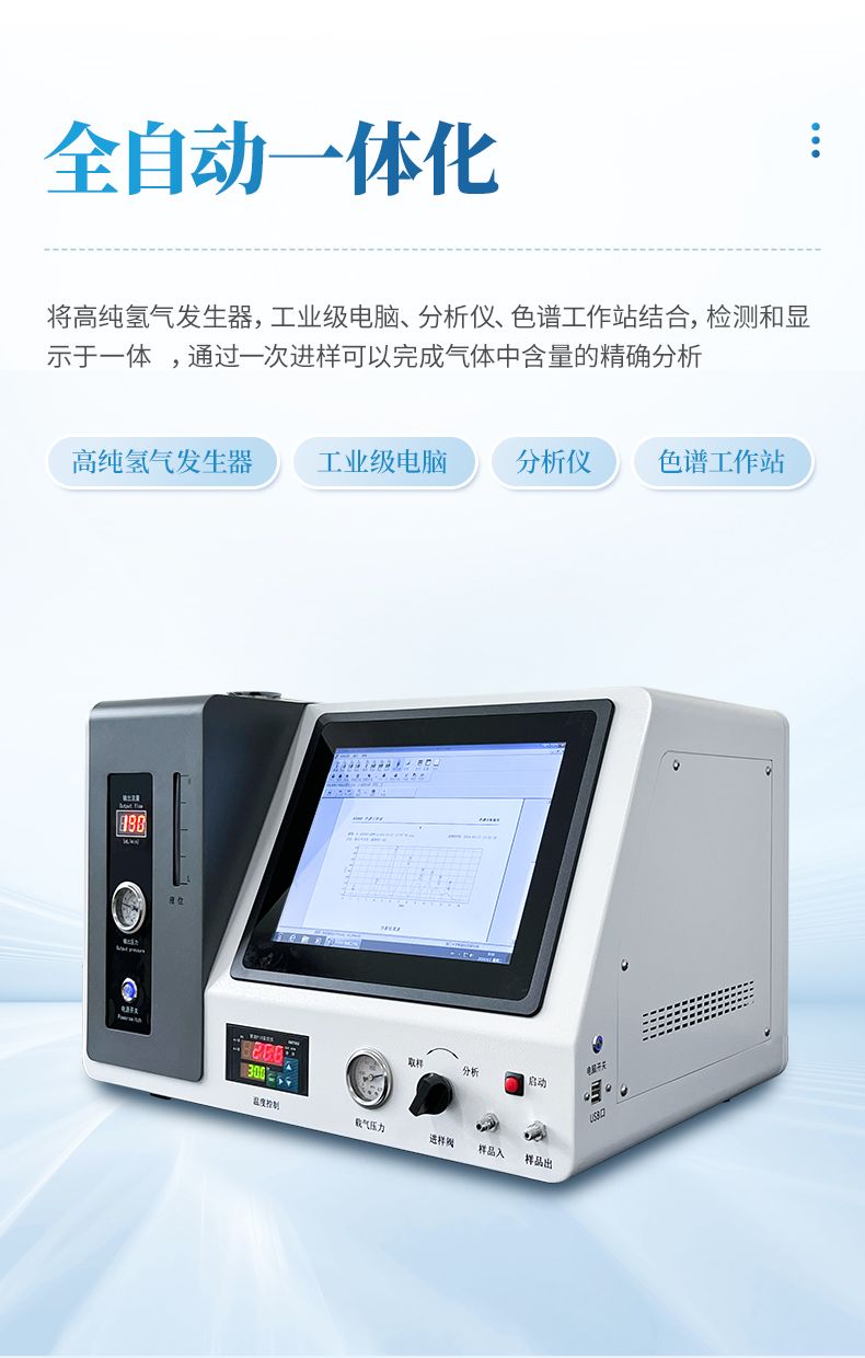 1、將高純氫氣發(fā)生器,分析儀完美結(jié)合,通過一次進樣可以完成氣體中含量的精確分析.
