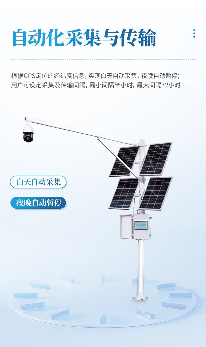 5. 自動化采集與傳輸:根據GPS定位的經緯度信息,實現白天自動采集,夜晚自動暫停;用戶可設定采集及傳輸間隔,最小間隔半小時,最大間隔72小時
