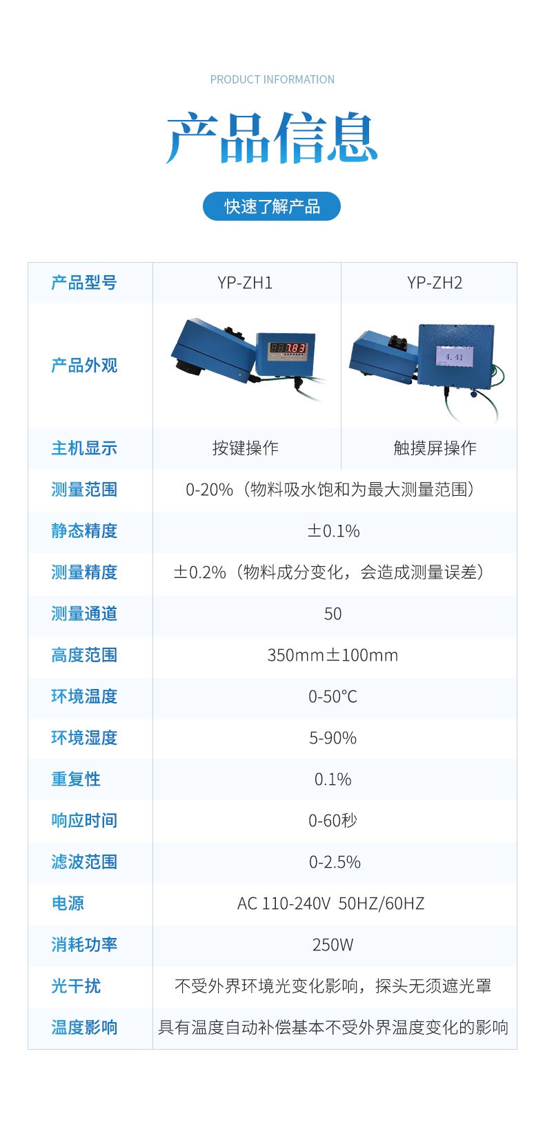 測量范圍 : 0-20%(物料吸水飽和為最大測量范圍)